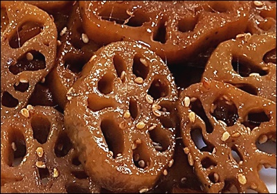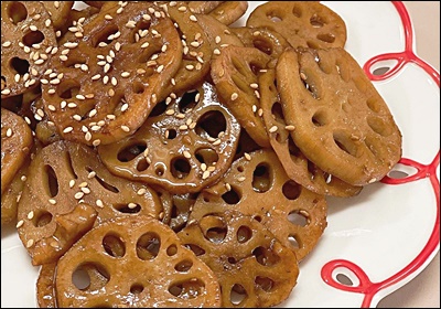 연근의 구멍 뚫린 모양은 ‘구멍 사이로 복이 들어온다’는 의미로 여겨져 길한 음식으로도 간주됐어요. 그래서 혼례나 환갑잔치 등 경사스러운 자리에 올려지기도 했죠. 요즘은 모양이 예쁘고 아삭한 식감 덕분에 도시락 반찬으로 인기가 높아요.